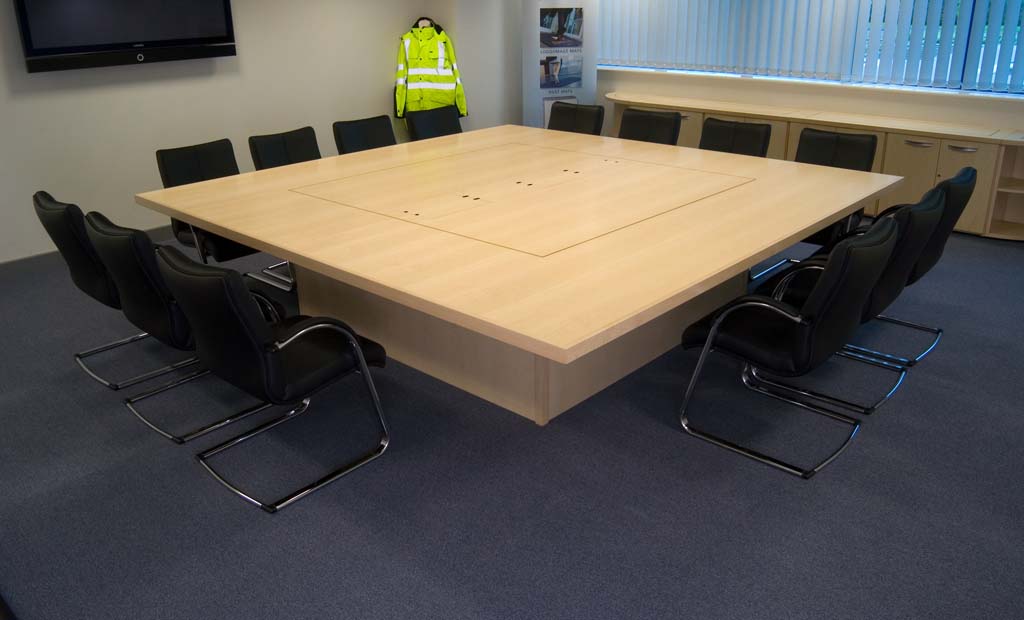 Masa de consiliu realizata la comanda din pal melaminat, canturi ABS, accesorii folosite de cea mai buna calitate.