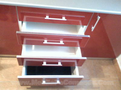 Sertare pe glisiere Blum import Austria, manere din aluminiu, picioare metalice reglabile, elemente de prindere ascunse.