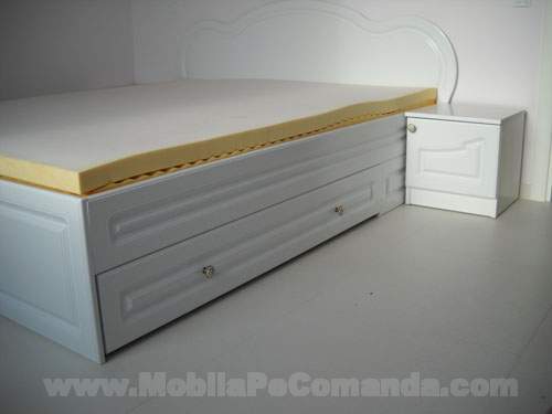 Patul este prevazut cu sertare laterale pentru depozitare.